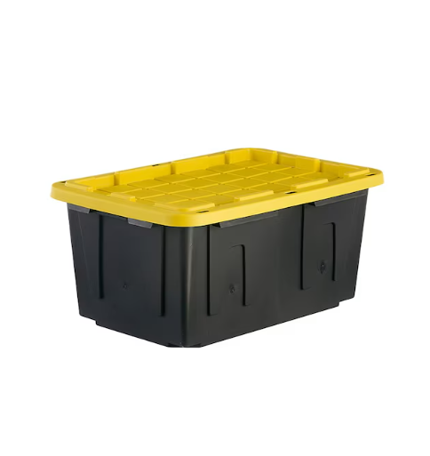 Project Source Commander Large 27 -Gallons ( 108 -Quarts ) Black and Yellow Heavy Duty Stackable Tote with Standard Snap Lid