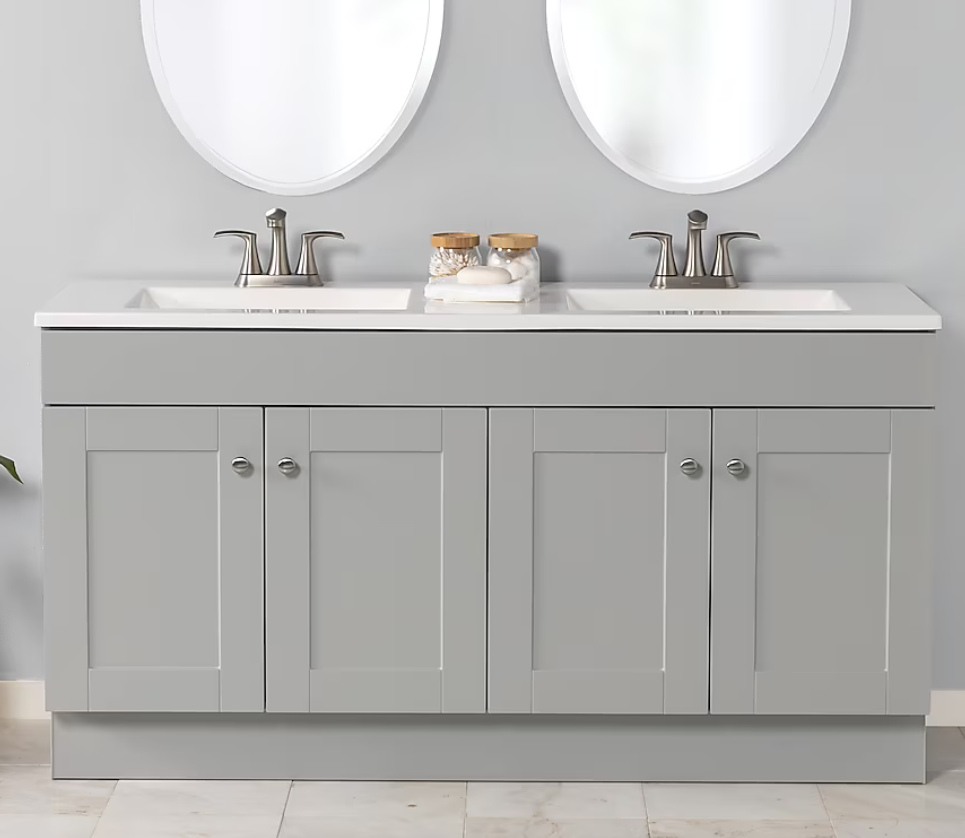 Project Source Dover 60-in Light Gray Double sink Bathroom Vanity with White Cultured marble Top