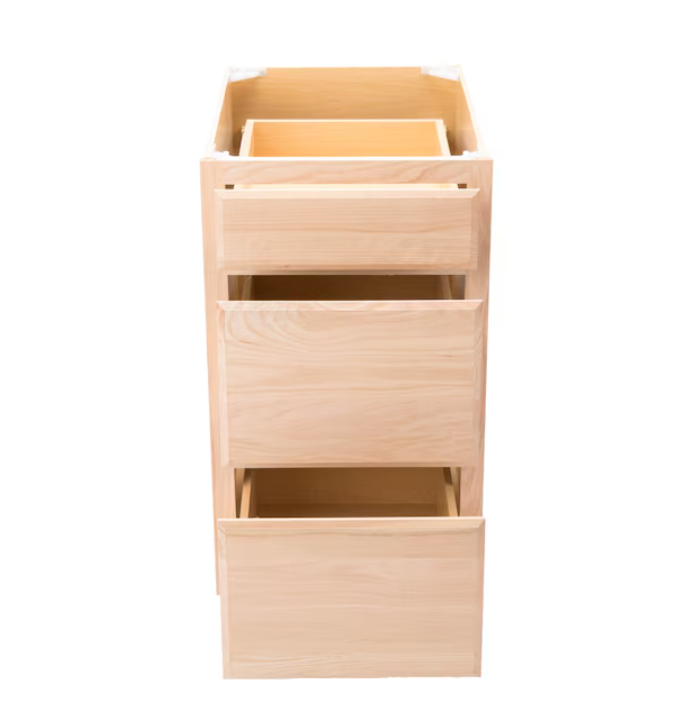 Project Source Oak Brook 18-in W x 35-in H x 23.75-in D Natural Unfinished Oak 3 -Drawers Drawer Base Fully assembled Cabinet (Flat Panel