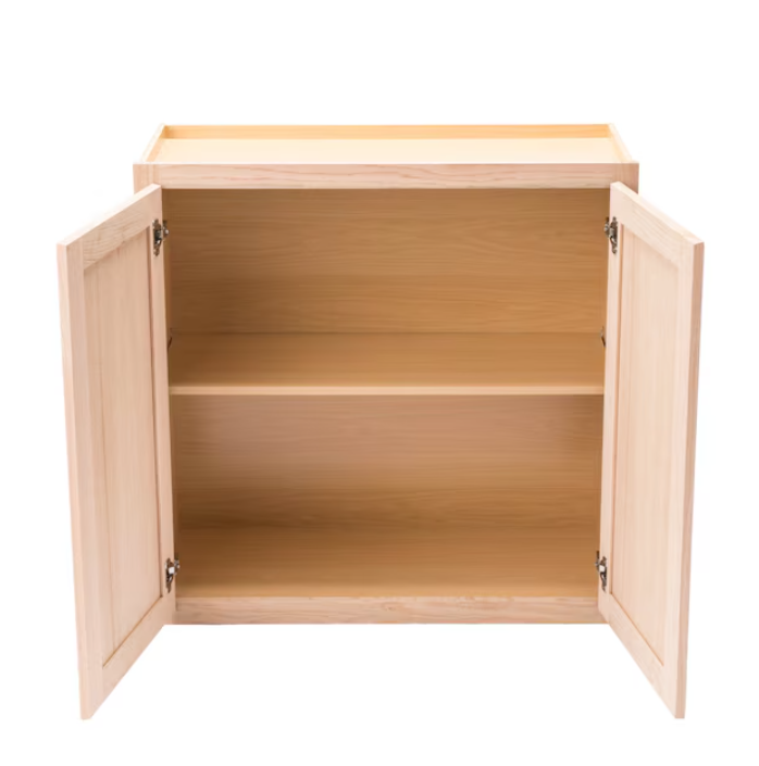 Project Source Oak Brook 30-in W x 30-in H x 12-in D Natural Unfinished Oak Wall Fully assembled Cabinet (Flat Panel Square)