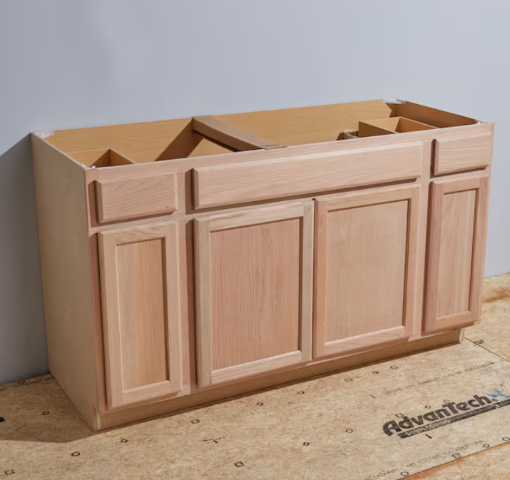 Project Source Oak Brook 60-in W x 35-in H x 23.75-in D Natural Unfinished Oak 2 -Drawers Sink Base Fully assembled Cabinet (Flat Panel Square)