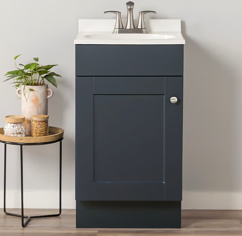 Project Source Dover 18-in Navy Blue Single sink Bathroom Vanity with White Cultured marble Top