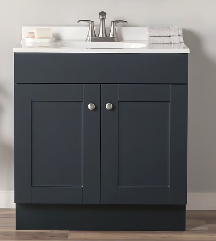 Project Source Dover 30-in Navy Blue Single sink Bathroom Vanity with White Cultured marble Top